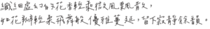 細緻而略帶虛幻感的花香,輕柔地隨風飄散,