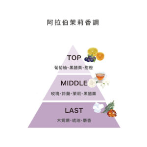 以清新的柑橘調開啟,給人親切明亮的印象,隨後逐漸轉化為深邃神秘的花香麝香調。